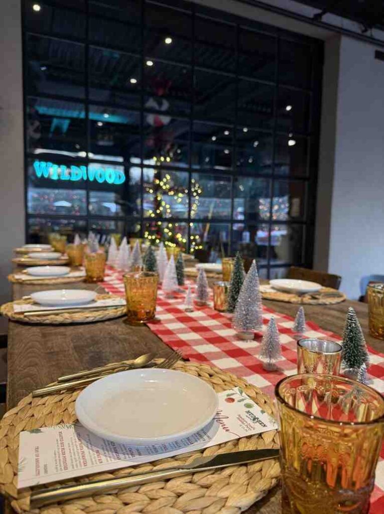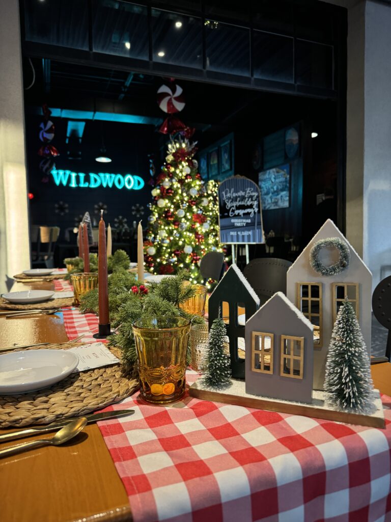 Step into a winter wonderland of twinkling lights, evergreen accents, and beautifully decorated tablescapes. Each space is dressed for the season with holiday centerpieces, elegant place settings, and personalized signage to make your team’s celebration feel one-of-a-kind.